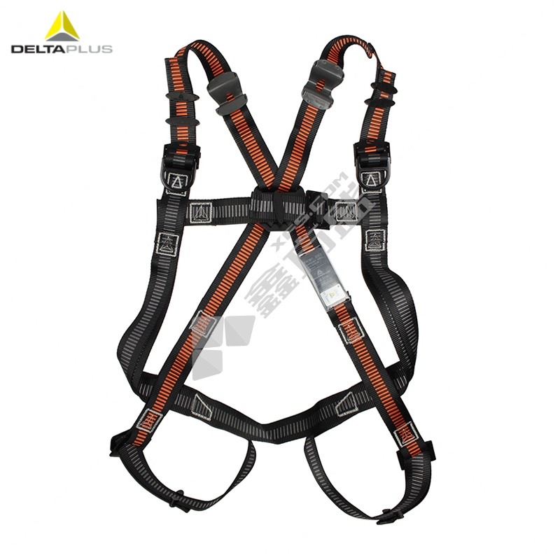 代尔塔 506102 带护腰全身式 安全带套装 黑橙色 双大钩减震绳