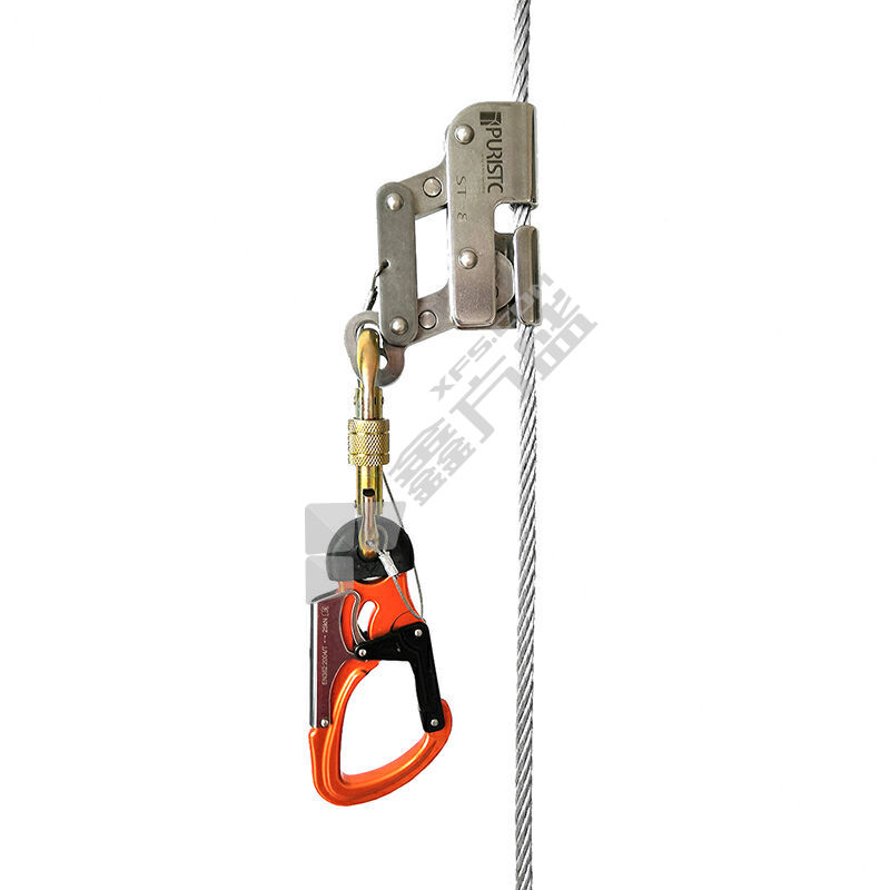 羿科 绳自锁器. 60816722,自锁器为不锈钢材质 用于8海米不锈钢缆 带有两个安全钩和一个缓冲包 符合EN353-2标准.