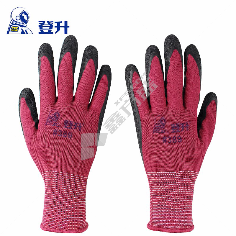 登升 #389 乳胶防滑耐磨皱纹手套 8.5号 紫红纱黑胶 #389