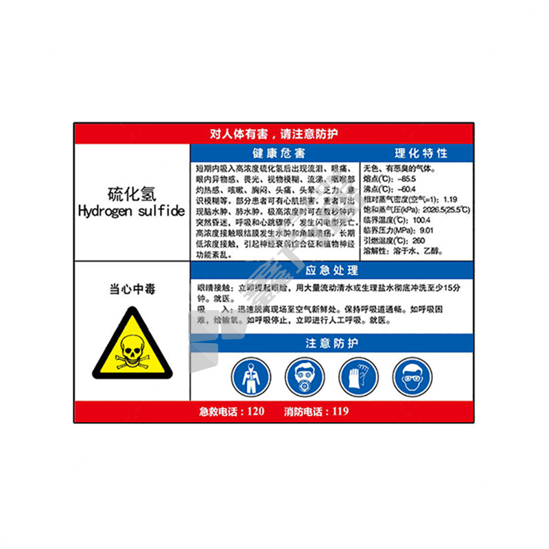 标识牌专家 管道介质标识130 QSA137C3 700×500mm 硫化氢