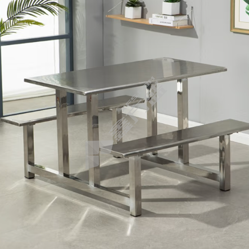 乐创 ZY-BXG-322 不锈钢食堂桌椅 1400*700*750mm/不锈钢色