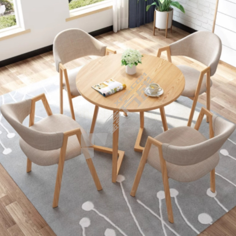 国产优品 洽谈桌椅组合 78cm棉麻布4椅+80cm原木圆桌/浅卡其色