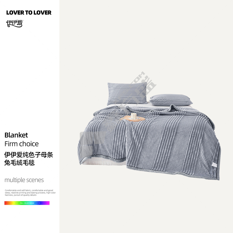 伊伊爱 YTK25511 纯色子母条兔毛绒毛毯 200*230cm 浅灰色