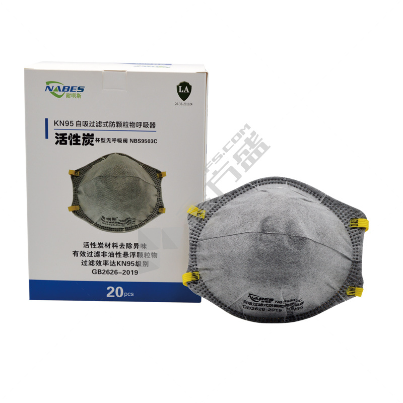 耐呗斯 杯型活性炭杯形无呼吸阀内鼻梁KN95口罩 400只装 灰色 头戴式 20只/盒 NBS9503C
