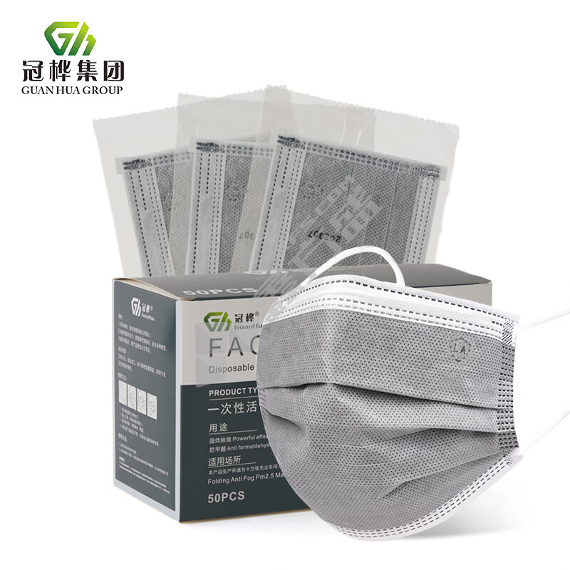 安美尚 A601 一次性活性炭口罩 黑色 50只/盒 A601