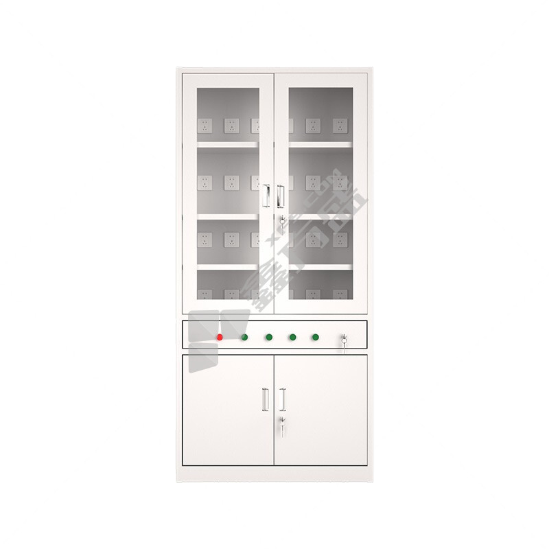 悦山 钢制柜玻璃门带插座充电柜 900*400*1820mm 灰白色