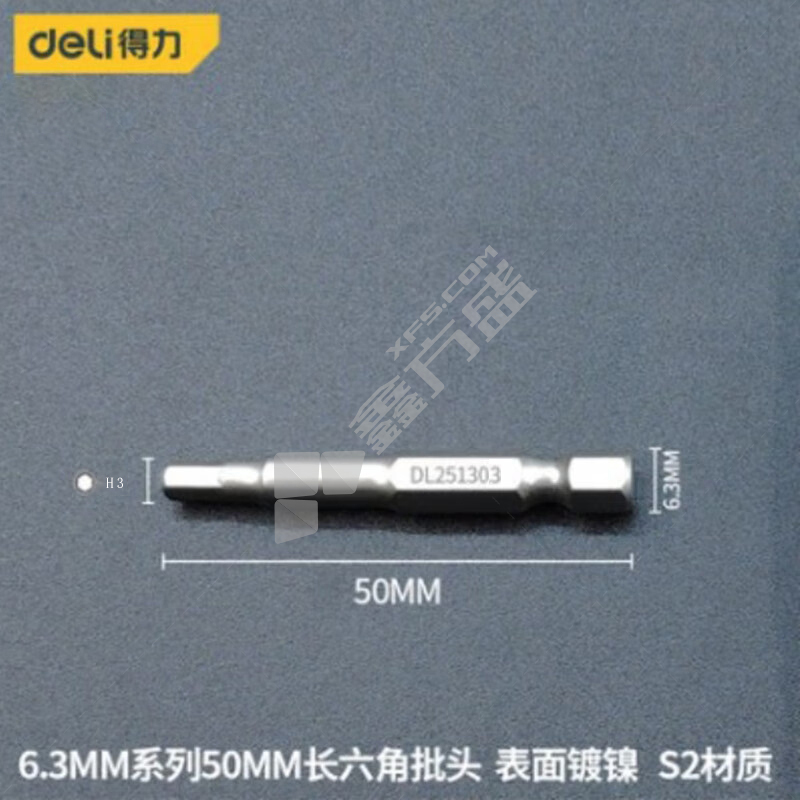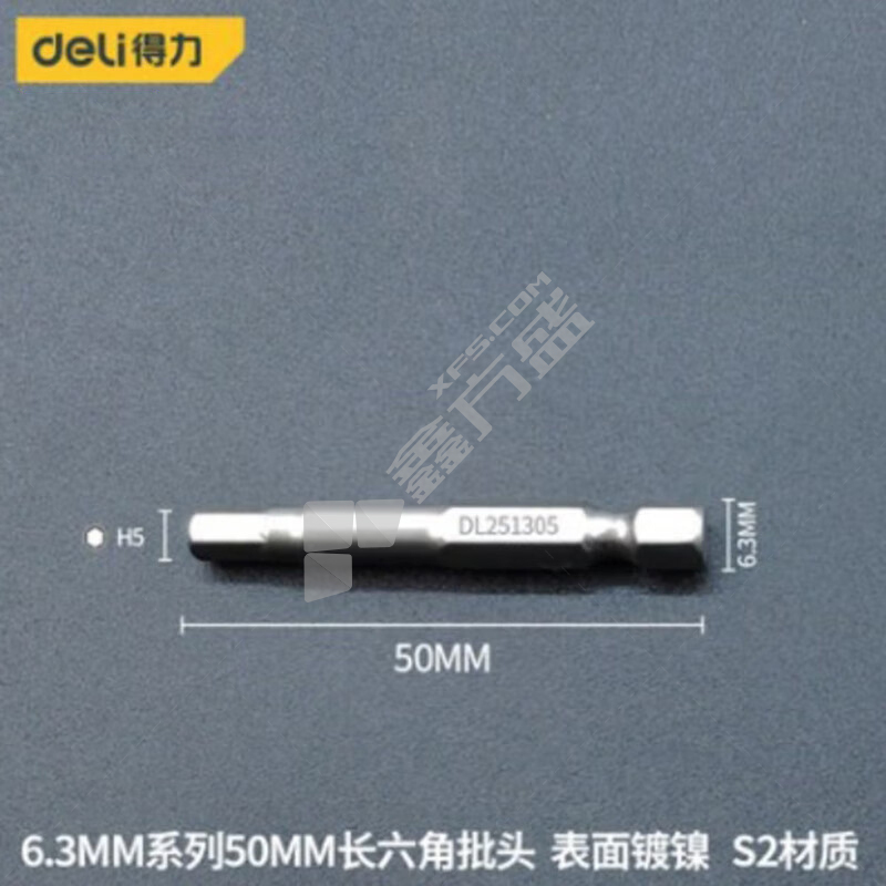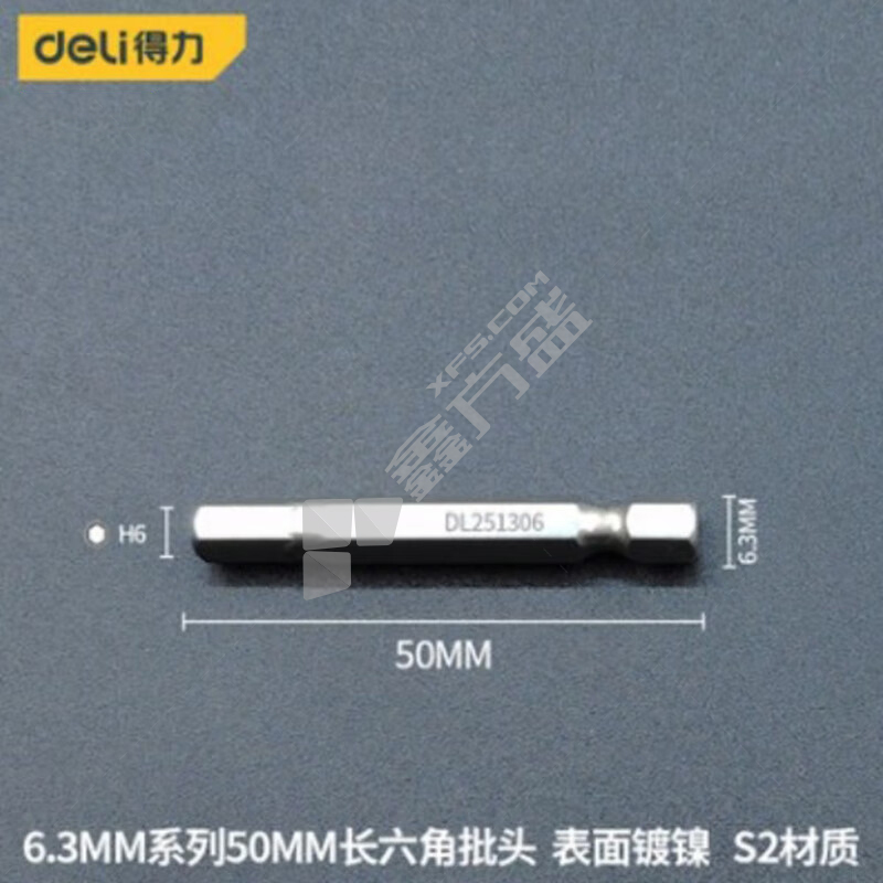 得力deli 6.3MM系列50MM长六角批头 H6*50mm DL251306