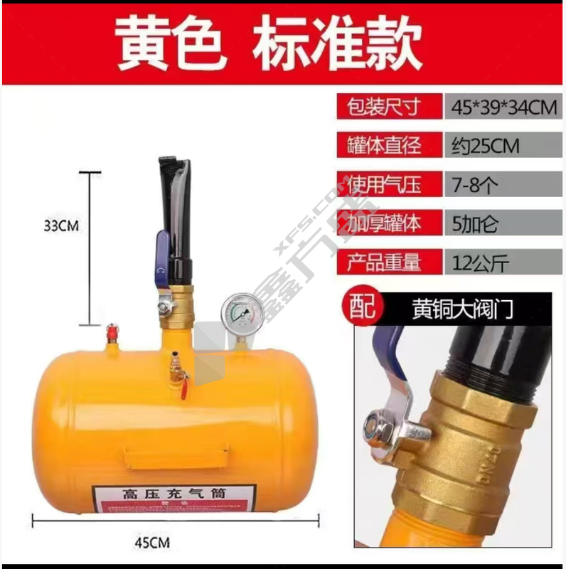 赫力斯 多功能高压打气筒 带气压表高压打气筒