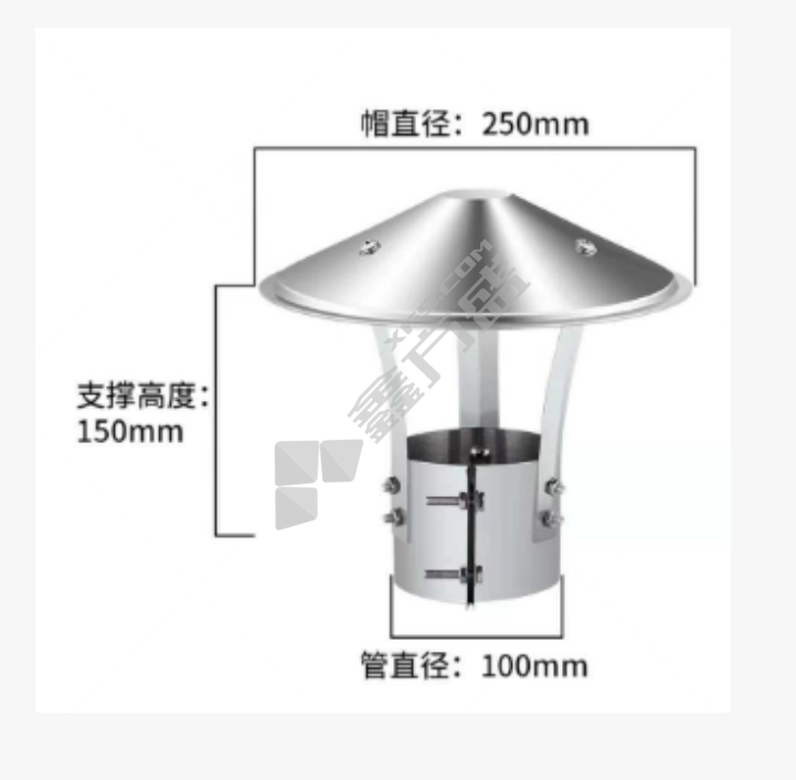 国产优品 304不锈钢防雨帽 帽250mm*支撑150mm*管100mm