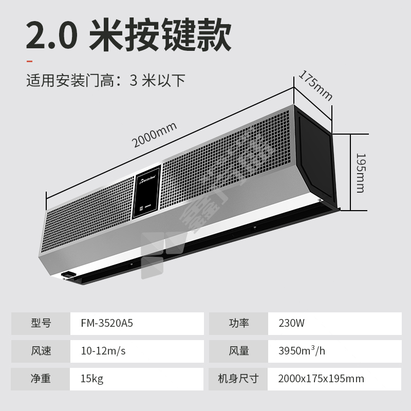 西奥多 贯流式风幕机 FM-3520A5 220V 0.23kW 3950m³/h 2000*175*195mm