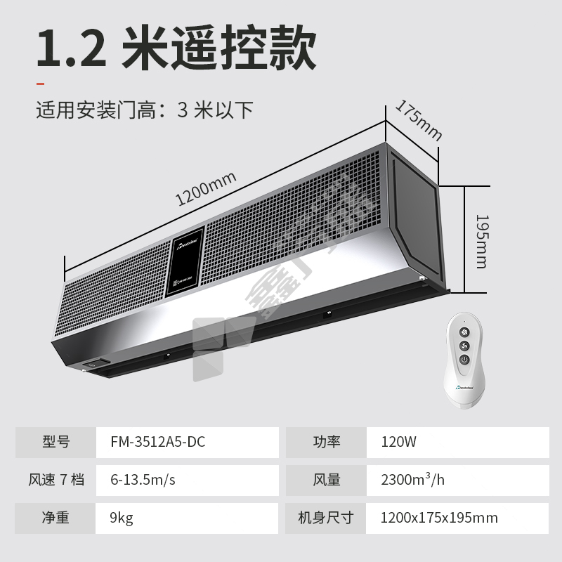 绿岛风 吊顶式风幕机遥控型 DFM3509HY