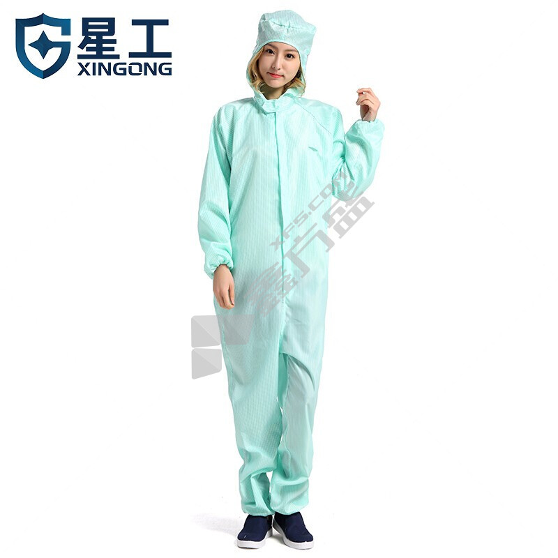 星工 XGJ-1 防尘无尘衣连体带帽防静电工作服 XXL 绿色