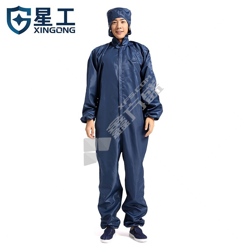 星工 XGJ-2 防尘无尘衣分体带帽防静电工作服 S 藏青色