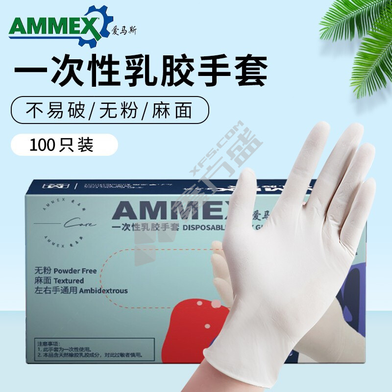 爱马斯 一次性乳胶手套TLFT 麻面 中号 乳白色 44100