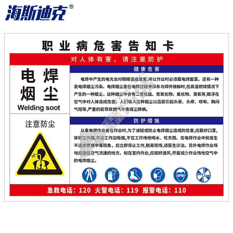 海斯迪克职业病危害告知卡牌pvc塑料板 HK-616 电焊烟尘 30*40cm