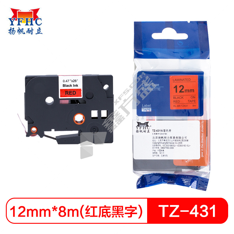 扬帆耐立 YFHC-TZ-431 标签色带 红底黑字 12mm