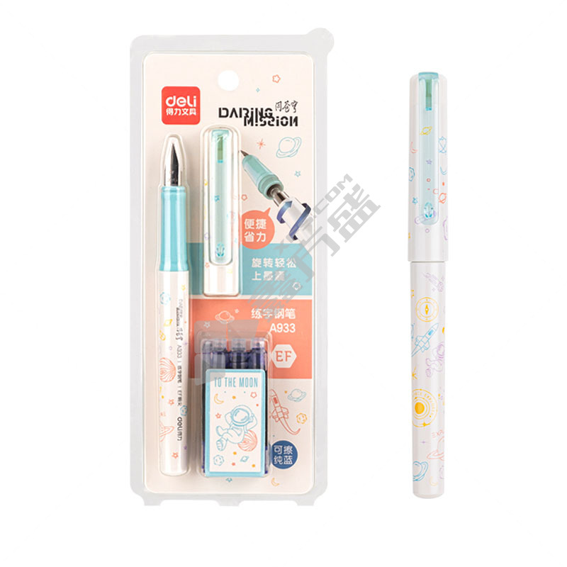 得力 A932 钢笔 EF尖 可擦纯蓝/笔壳灰色