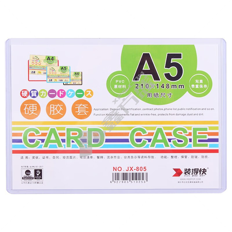 装得快 JX805 A5硬胶套 210*148mm 透明