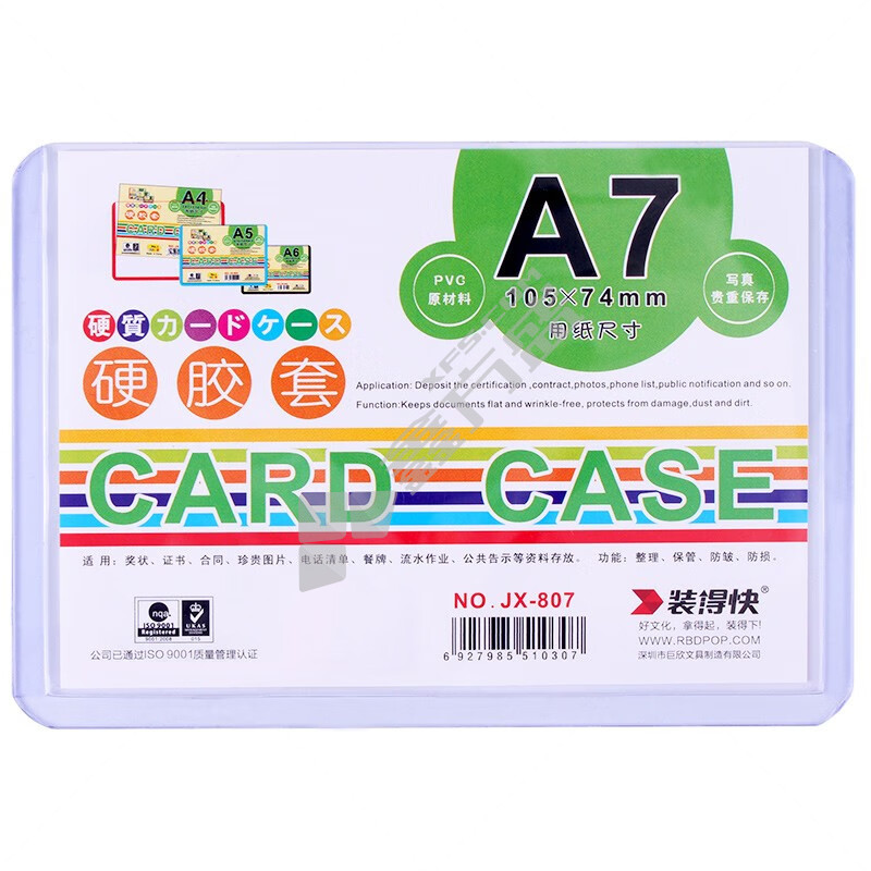 装得快 A7硬胶套 105*74mm 透明 JX807
