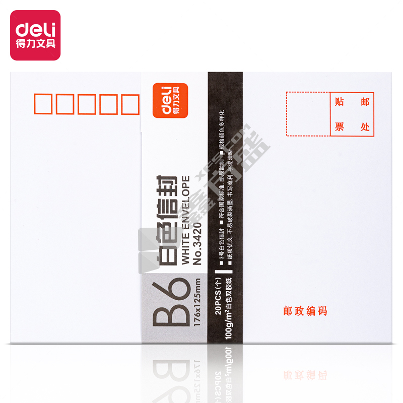 得力 3420 3号白色信封 176*125mm 白色 20个/包
