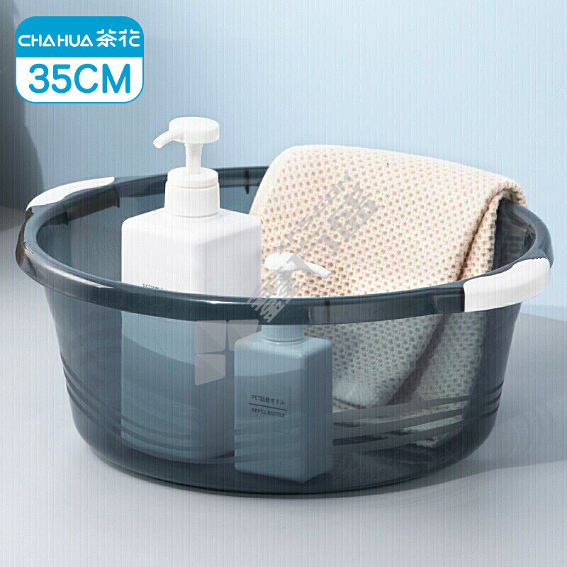 茶花 03421K 35cm把手防滑盆 蓝灰