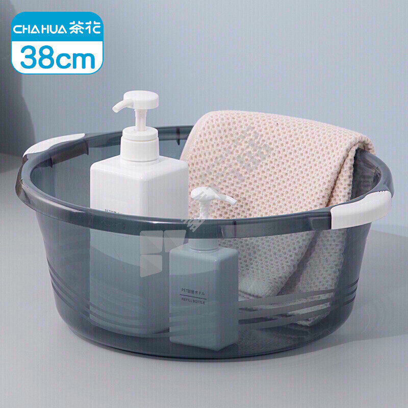 茶花 03431K 38cm把手防滑盆 蓝灰