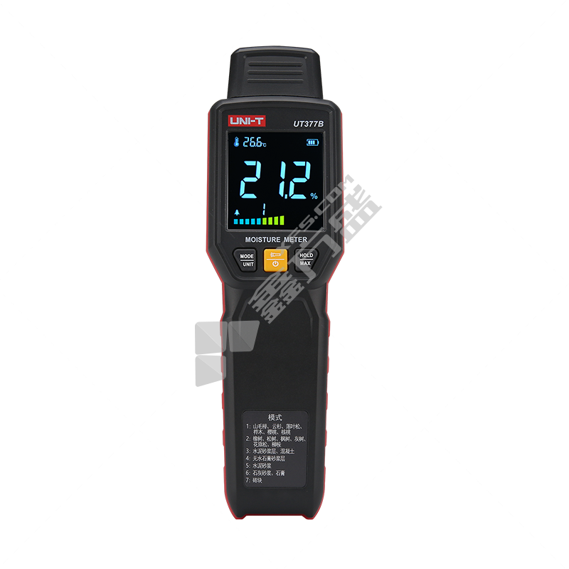 优利德 插针式水份测量仪 UT377B 木材7.0~54.8% 建材0.0~22.1% 木材±1% 建材±0.5%