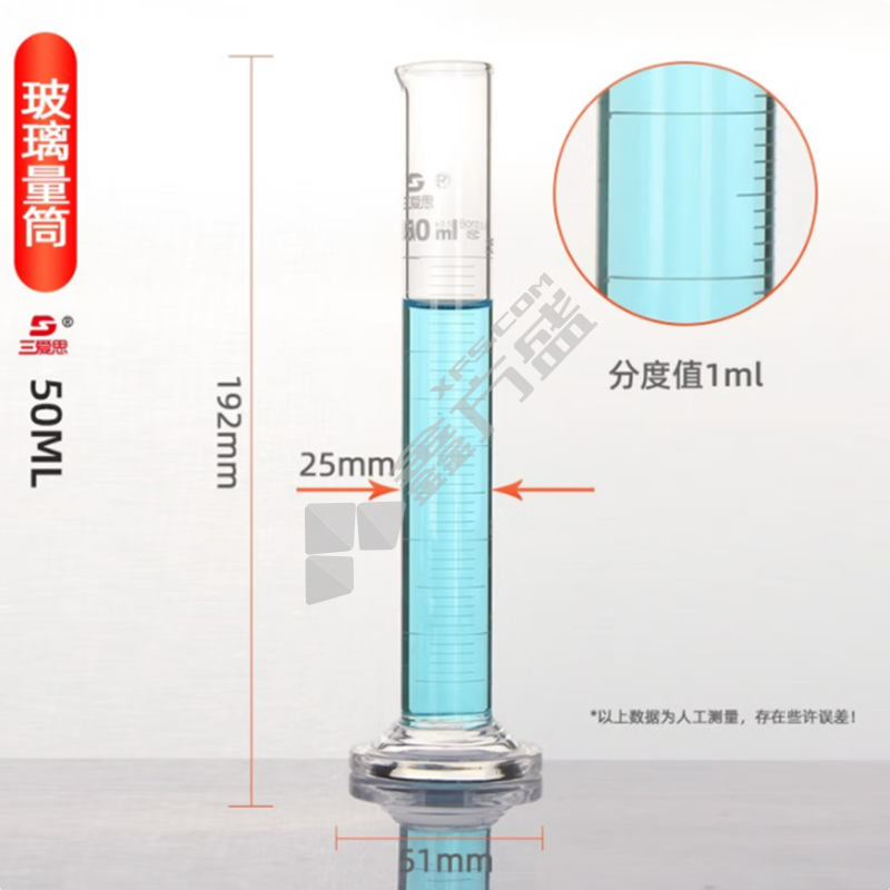 蜀牛 量杯 3.3高硼硅料 50ml,最小分度值5.0