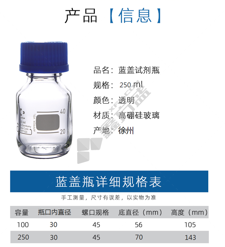 利轩 蓝盖试剂瓶 250ml 80个/箱