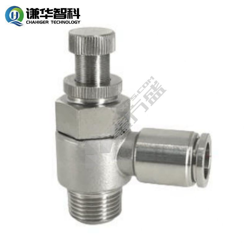 谦华智科 304不锈钢直角气动快插转外螺纹限流调速节流手阀 SL8-04 快插接管外径8mm-外丝螺纹4分