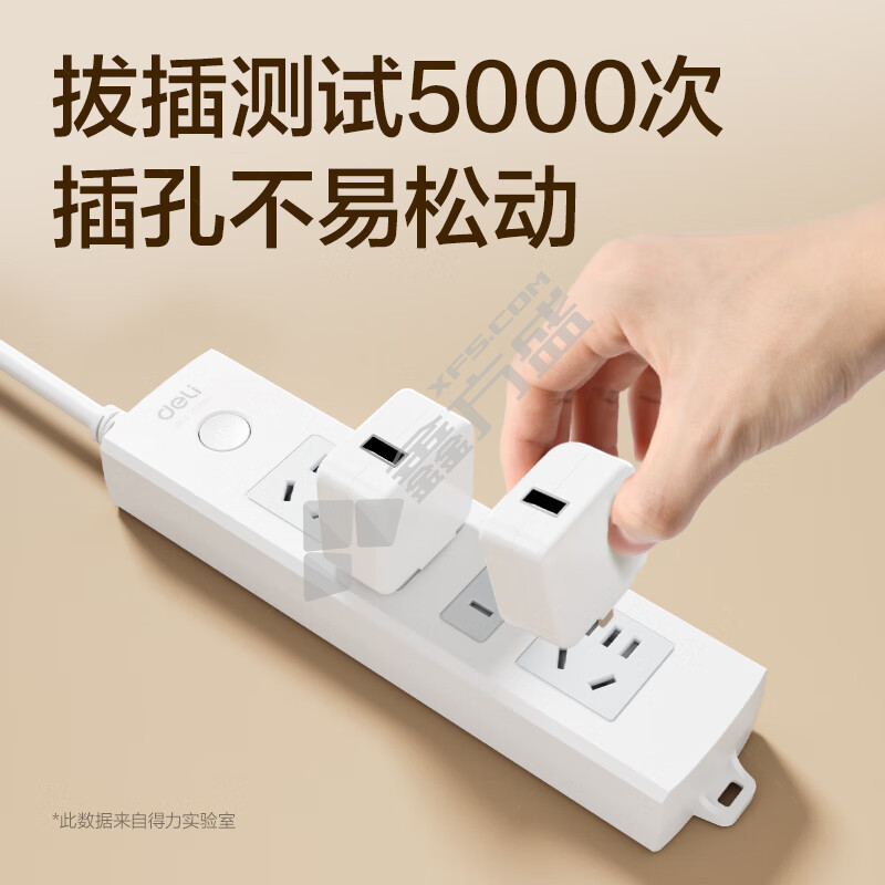 得力 2位两孔+2位五孔 18系列插排 18251 10A 总控开关 2m 白色