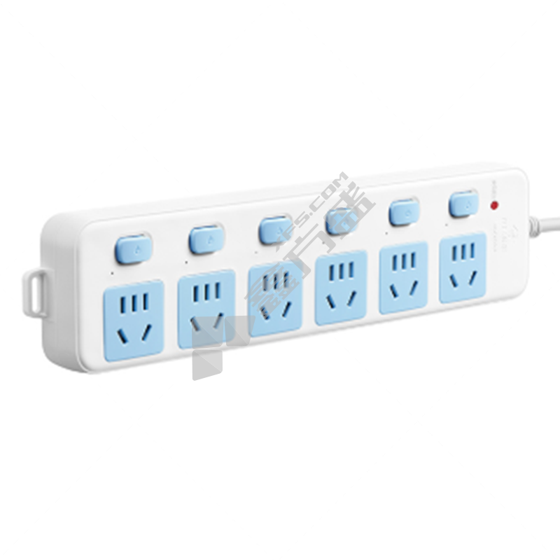 公牛 5位五孔 新国标插排 GN-602 10A 总控开关 3m 白蓝色