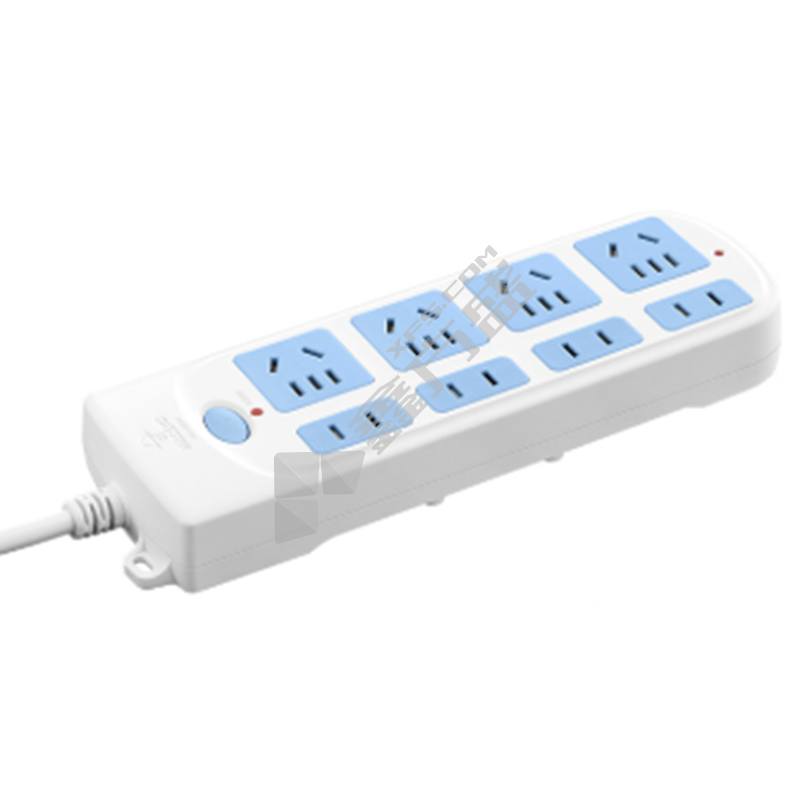公牛 4位五孔+4位两孔 插排 GN-403 10A 总控开关 无线 白蓝色