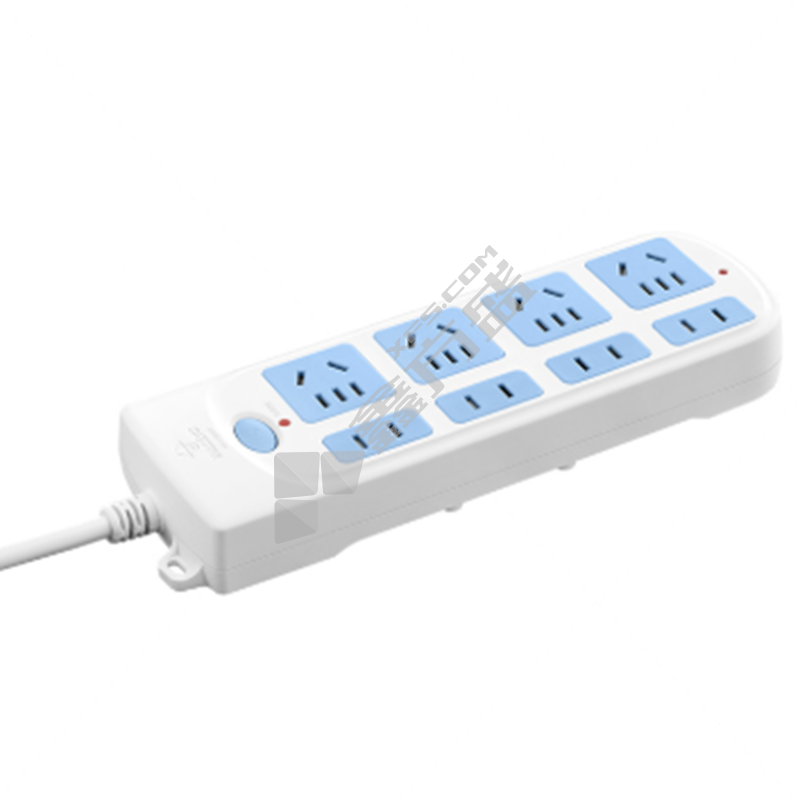公牛 8位五孔 新国标插排 GN-604 10A 总控开关 3m 白蓝色