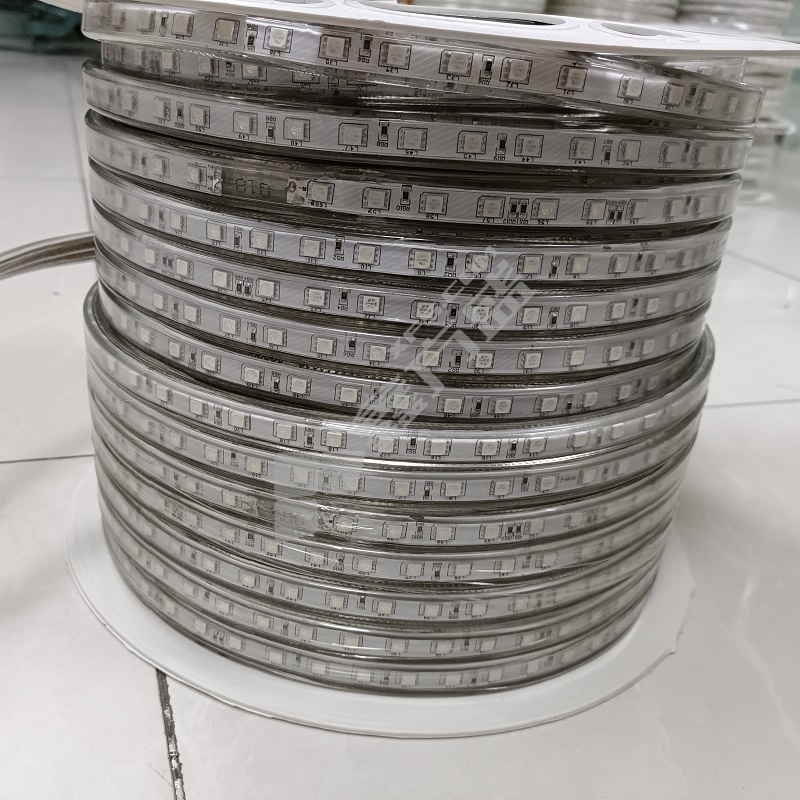 虹宇 220V-5050 透明两针LED灯带 10-11w 3000K 220V IP65 60灯-8mm-RGB