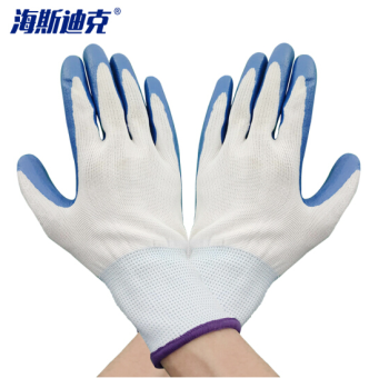 赫力斯 涤纶丁腈手套 808# L 白线蓝胶 涤纶丁腈