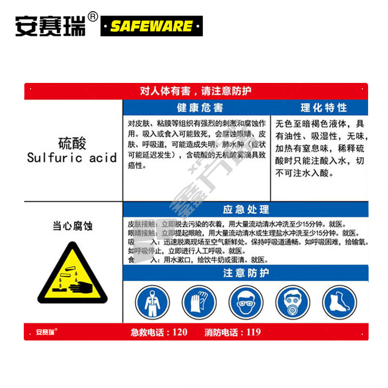 安赛瑞 14625 危化品安全告知牌 14625 60×45cm 硫酸