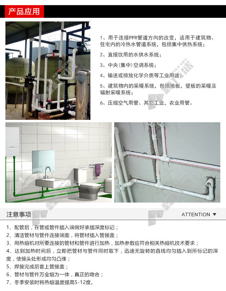 PP-R异径弯头连接方式:热熔承插