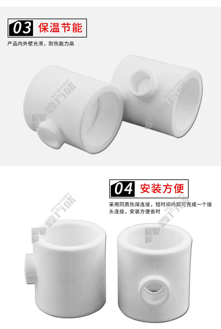 PP-R异径三通连接方式:热熔承插