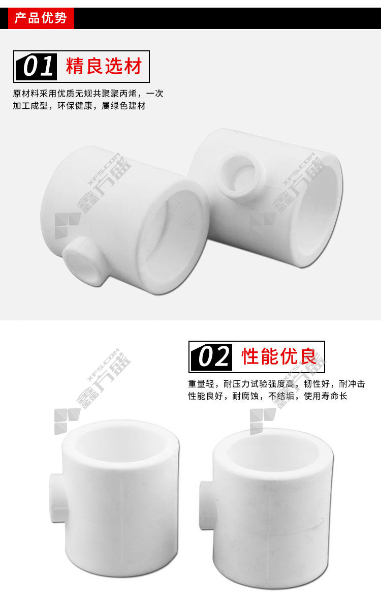 PP-R异径三通材质:无规共聚聚丙烯