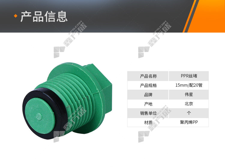 商品名称: 伟星 PPR外牙管堵 带垫片 绿色 15