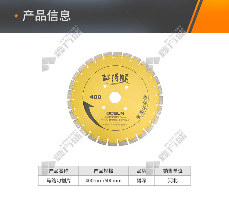 商品名称: 博深 切的顺马路切割片 400*50*3.6mm