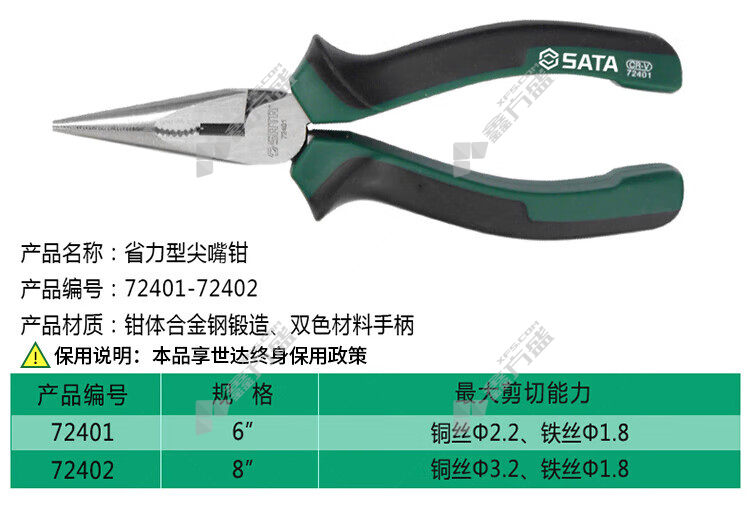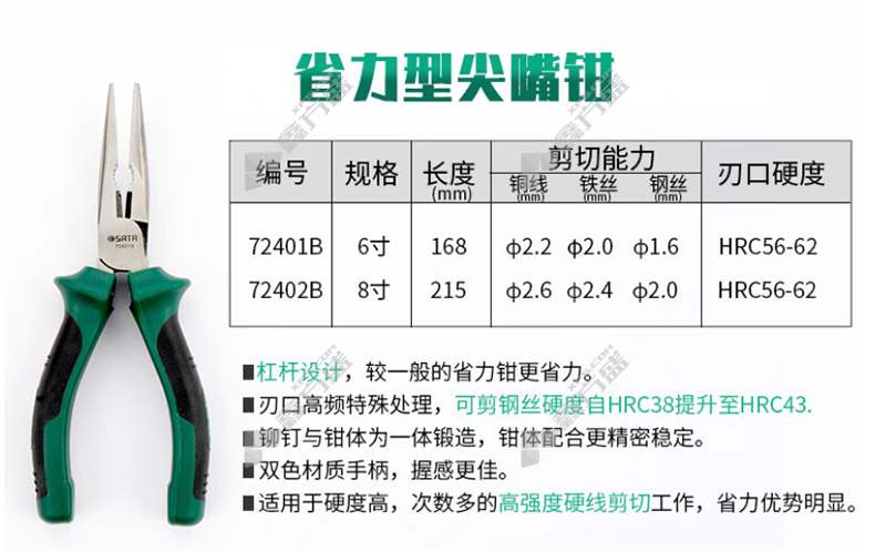 商品名称: 世达 省力型尖嘴钳 72401B 160mm 6寸