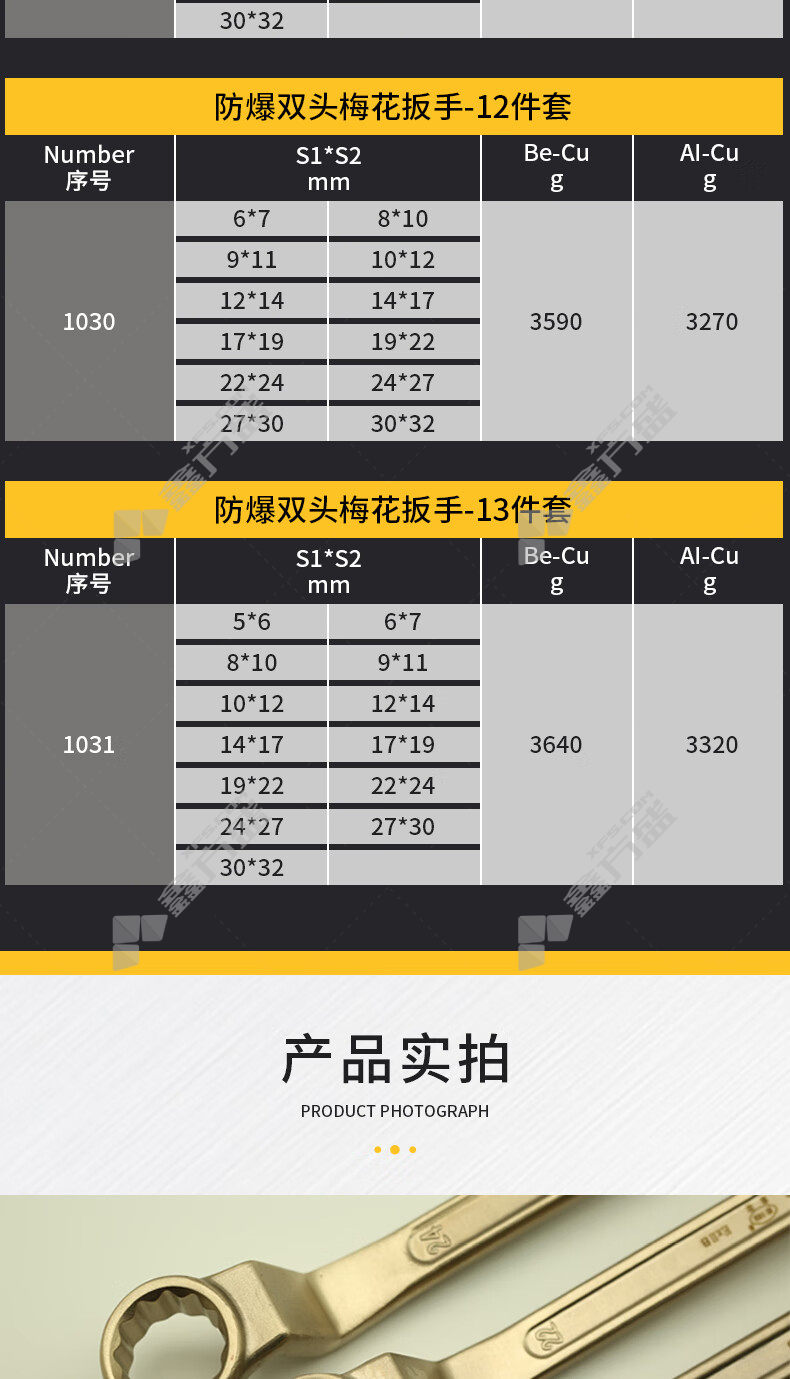 扳手组套材质:铍青铜合金/铝青铜合金