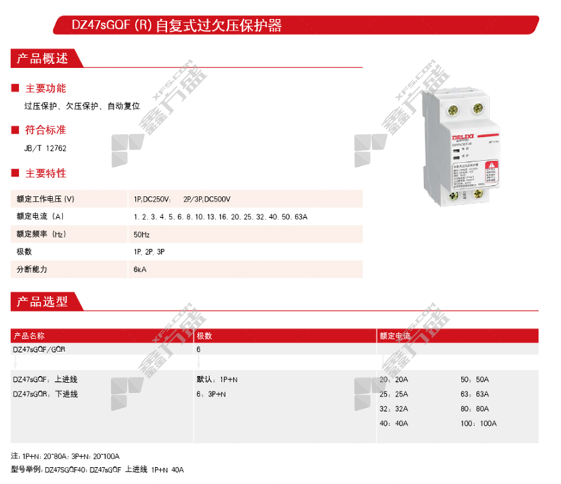 商品名称: 德力西DELIXI 过欠压保护器DZ47sGQR401P+N DZ47sGQR 1P+N 32A 下进上出
