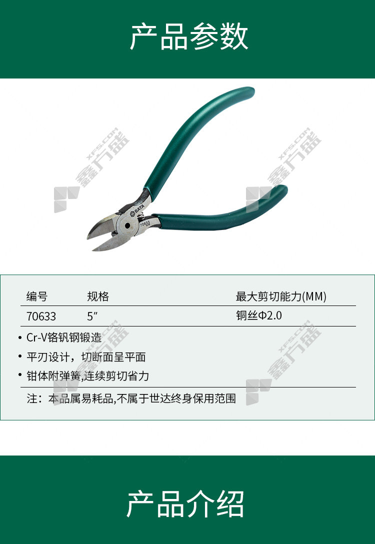商品名称: 世达 SATA 平刃电子剪切钳 平刃电子5寸 70633