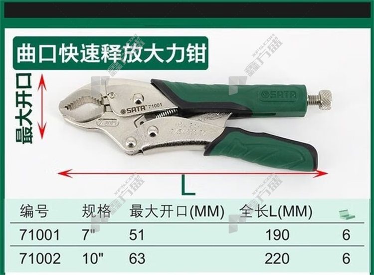 商品名称: 世达 曲口快速释放大力钳 曲口快速释放10寸 71002