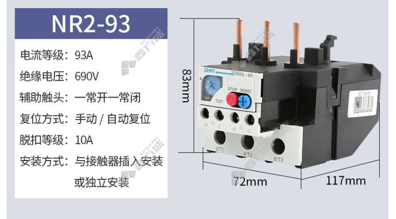 • 正泰 CHNT 热过载继电器NR2-93型 NR2-93 37-50A 93A