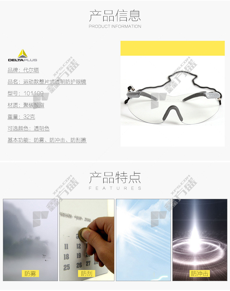 商品名称: 代尔塔 101109 防冲击防紫外线 护目镜 透明片黑架