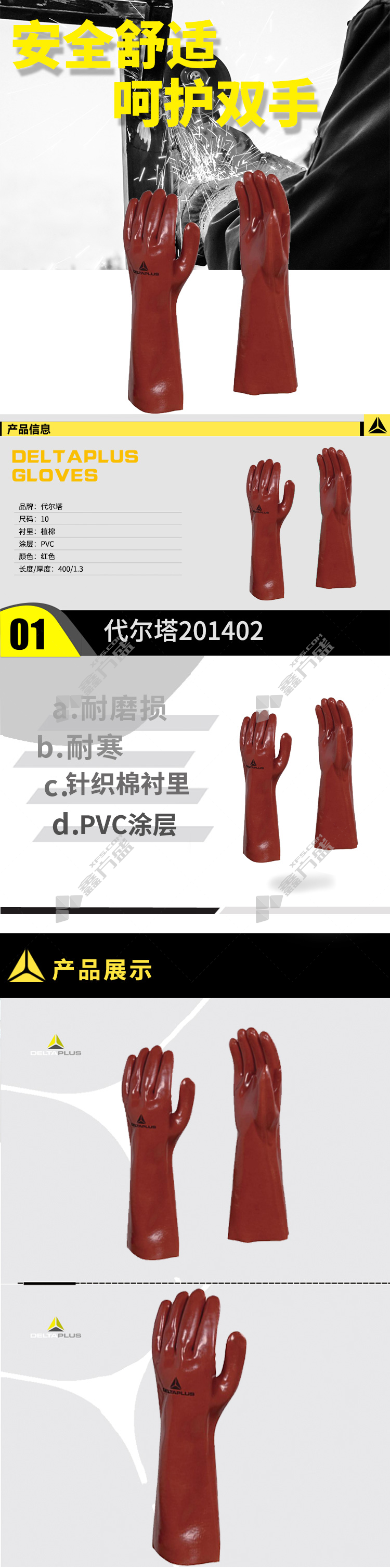 商品名称: 代尔塔 201402 PVC防化手套 10码 红色 PVC